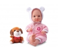 Uma linda boneca que vai encantar as garotinhas! Ela vem com capuz de orelhinhas e acompanha um lindo cachorrinho de pelúcia para passear. As meninas vão amar, Possui membros e cabeça em vinil macio e corpinho em tecido com enchimento, cheia detalhes, gostosa de abraçar e apertar, e compõe um delicioso cheirinho de bebê perfumado. Estimula a interação entre pais e filhos, coordenação motora, criatividade - Recomendado para crianças à partir de 3 anos