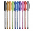 Kit contendo 10 canetas nas cores: Preta, azul, azul claro, verde claro, violeta, rosa, vermelha, laranja, dourada e prata