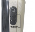 Parte Externa Logo frontal da marca Material predominante: ABS Forro interno 100% em poliéster. Alça de mão na parte superior carrinho telescópico em alumínio fechamento através de dois zíperes cadeado embutido com senha de 3 dígitos divisória interna com zíper bolso com tela na parte da divisória elástico interno em X para fixar as bagagens 4 Rodinhas em ABS com giro 360º super resistentes. Dimensões externas da mala