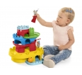 Tem formato de castelo e ainda é um super tobogã. São quatro andares para as bolinhas deslizarem. E vem com bandeiras para identificar o reino que é inteiramente desmontável! São 10 peças para desmontar, montar e formar o castelo.